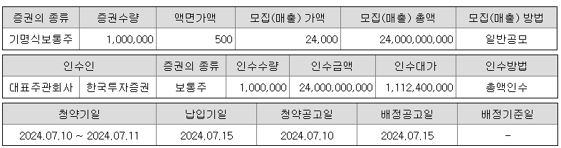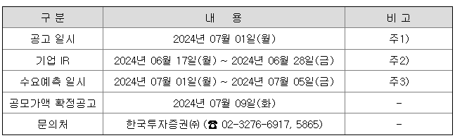 - 기관투자자 청약일: 2024년 07월 10일 ~ 2024년 07월 11일 (2일간)