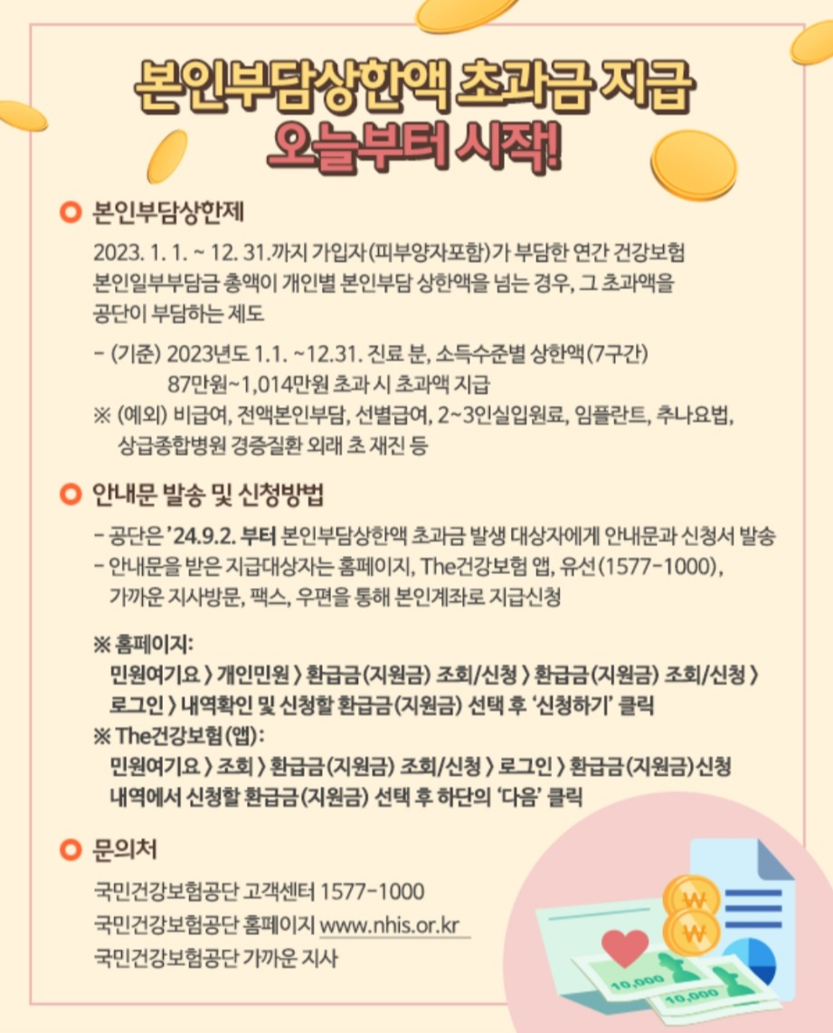 - 발송 시점: 2024년 9월 2일부터, 본인부담상한액 초과금이 발생한 대상자에게 안내문과 신청서가 발송됩니다.